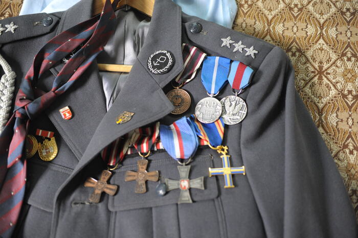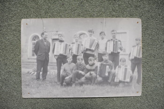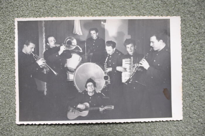 Plebanek Jan 1. Jan Plebanek (1. z lewej) jako nauczyciel muzyki w Międzyrzeczu, b.d. 2. Orkiestra kopalni Rozbark Bytom, 1957 r. Jan Plebanek na górze, gra na perkusji. 3. Odznaczenia przyznane Janowi Plebankowi. 4. legitymacja nadania Krzyża Za Wolność i Niepodległość, fot. Henryk Domagała
