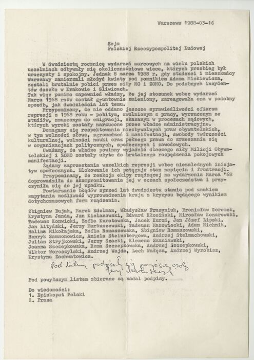 List otwarty do władz PRL z okazji 20. rocznicy wydarzeń Marca 1968 r. -