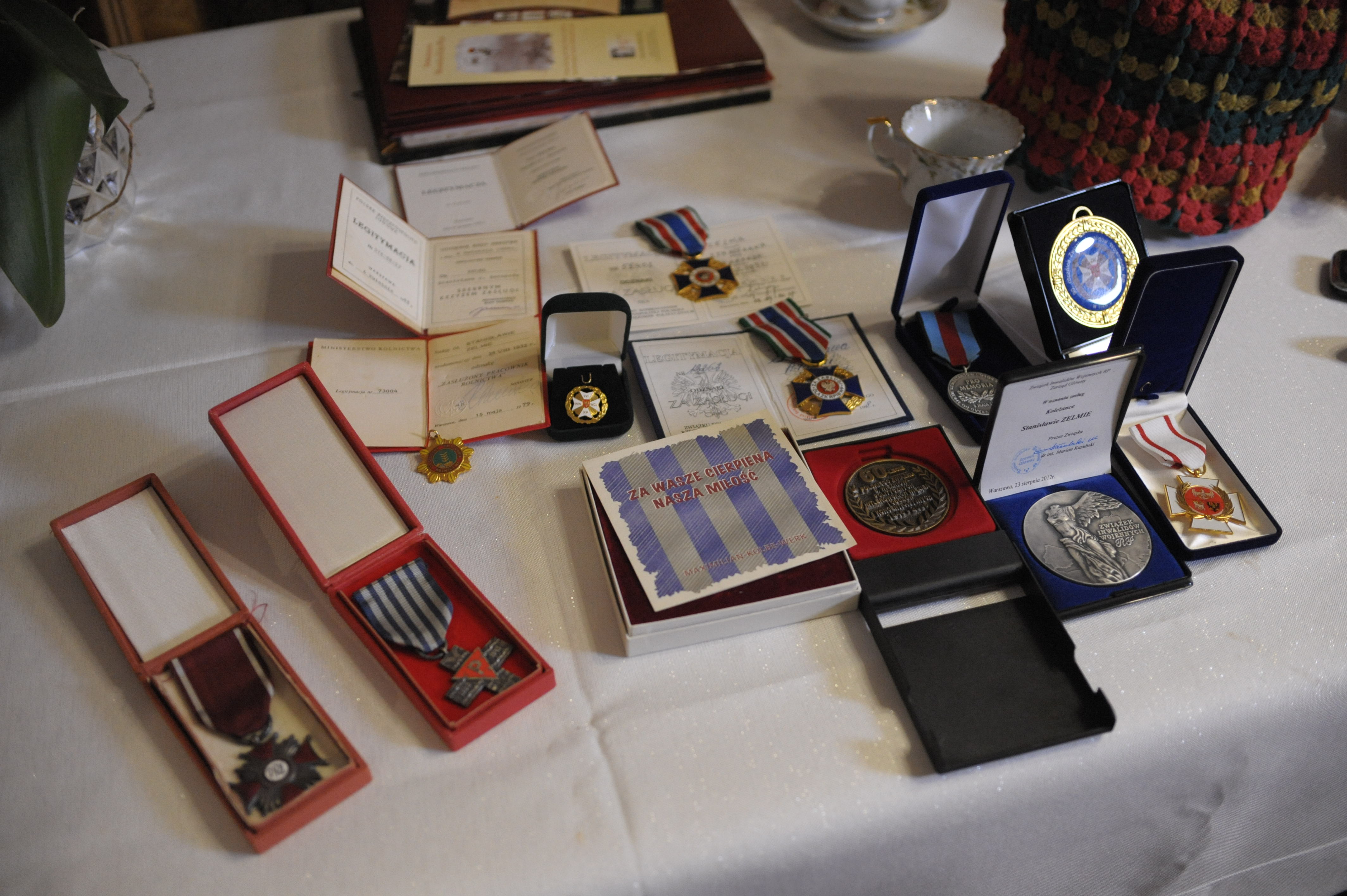 Odznaczenia i medale należące do p. Stanisławy Zelmy w jej rodzinnym domu -